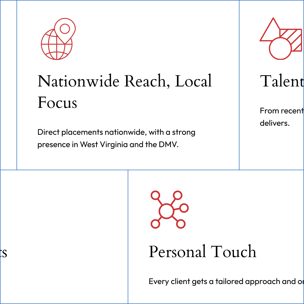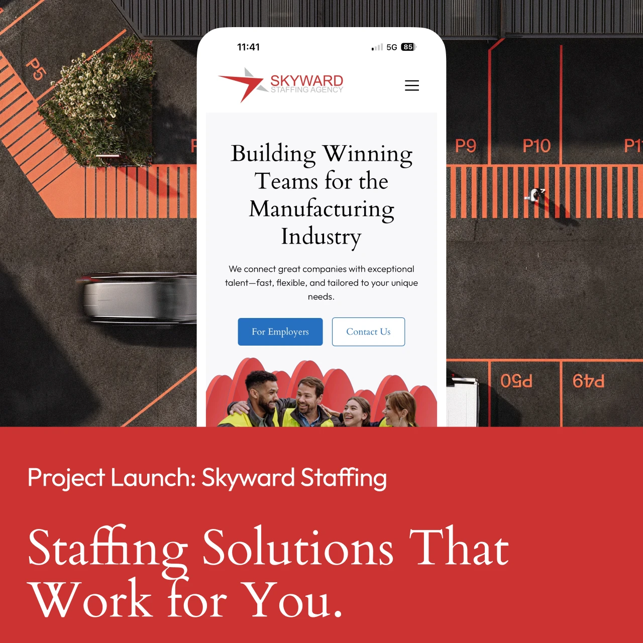 Staffing is a crowded category where visual identity and clarity are often an afterthought. Most firms trade on generic templates and clichés. Instead of reproducing the same stiff, unmemorable language and layouts, we clarified what makes Skyward different: confidence, industry understanding, and quality over volume. The strategy was to make the brand feel modern, credible, and purposeful from the first screen. This reframed Skyward from a “just another agency” impression to a partner clients can trust when posting jobs or pitching internal stakeholders.